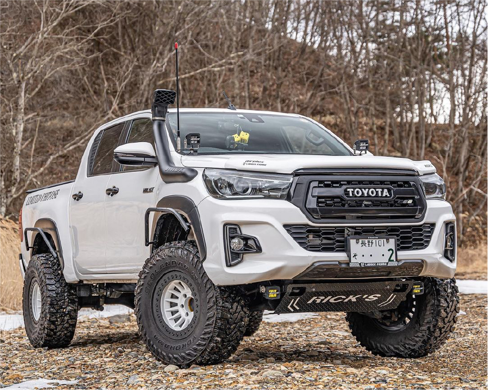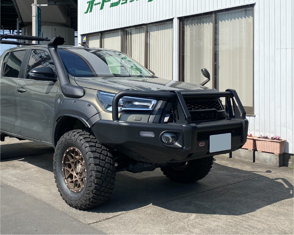 カスタム事例 LC PRADO → HILUX → FJ CRUISER → OTHER → ハイラックス リフトアップ 2インチ JAOS VFCA ver.B F2.0 R1.5 タイヤサイズ 265/70R17 3インチ JAOS VFCA ver.B F2.0 R1.5 1インチボディリフト タイヤサイズ 285/70R17 マウント加工済み 4インチ ARB オールドマンエミュー BP-51 2インチボディリフト タイヤサイズ 35x12.5R17 マウント加工済み 3インチ JAOS VFCA Ver.B F2.0 R2.0 1インチボディリフトキット 6インチ JAOS VFCA Ver.B F2.0 R2.0 スペーサー2インチ 1インチボディリフトキットA 6インチ SUN4x4 6インチ メンバーダウンキット 外装・内装パーツ バンパー ARB バンパー AFN セミガード AFN バグバード Airplex バグバード EGR シュノーケル 豪州トヨタ純正 トノカバー LADDER FRAME マフラー フジツボ オーバーハウル YAKIMA ルーフラック YAKIMA ルーフラック FRONT RUNNER ロックスライダー JAPAN 4X4 オーバーフェンダー 豪州トヨタ純正 ホイール Desert Racer Beadlock JP 9J-38 16inch
